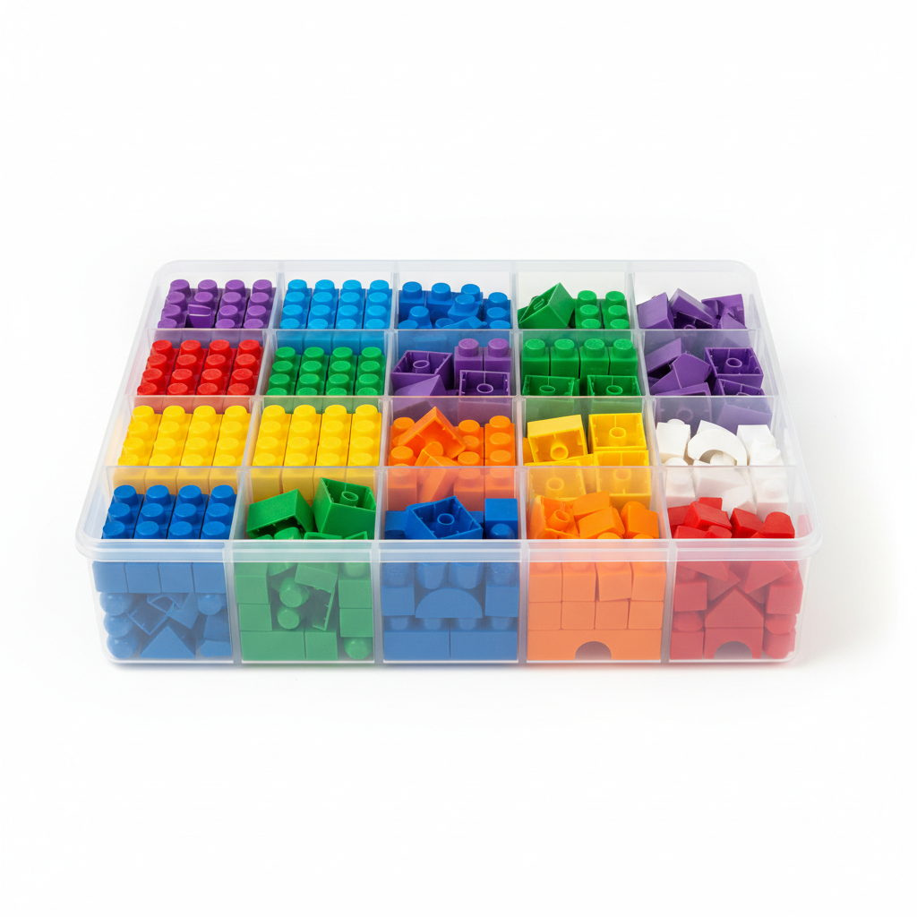 Unleash your child's creativity with our premium 500-piece building blocks set! Manufactured with love in India, these high-quality blocks are designed to inspire imagination and develop essential skills in young minds.Each block is crafted from non-toxic, BPA-free plastic that meets international safety standards. The vibrant colors are fade-resistant and the blocks feature a secure interlocking mechanism that's easy for small hands to use yet sturdy enough to build impressive structures. Perfect for solo play or group activities, this set encourages problem-solving, spatial awareness, and fine motor skill development. The included storage container makes cleanup a breeze and keeps all pieces organized.